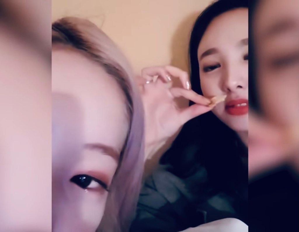 メンバー最年長のナヨンとマンネライン(年下組)のダヒョンが2人で日本のホテルでピザポテトを食べながらくつろいでいた。