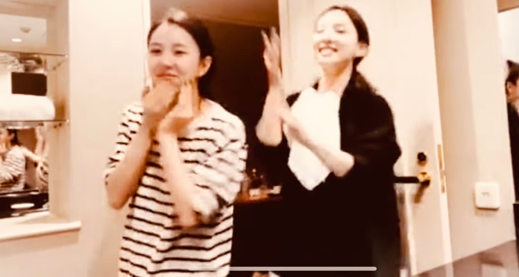 この動画では2人の仲の良い姿が見れます。ナヨンが洗面しながら鼻をかみたいと言ったら、チェヨンがカメラを手で隠しながらわーーーー!と大声を出して鼻をかむ音を掻き消そうとします。