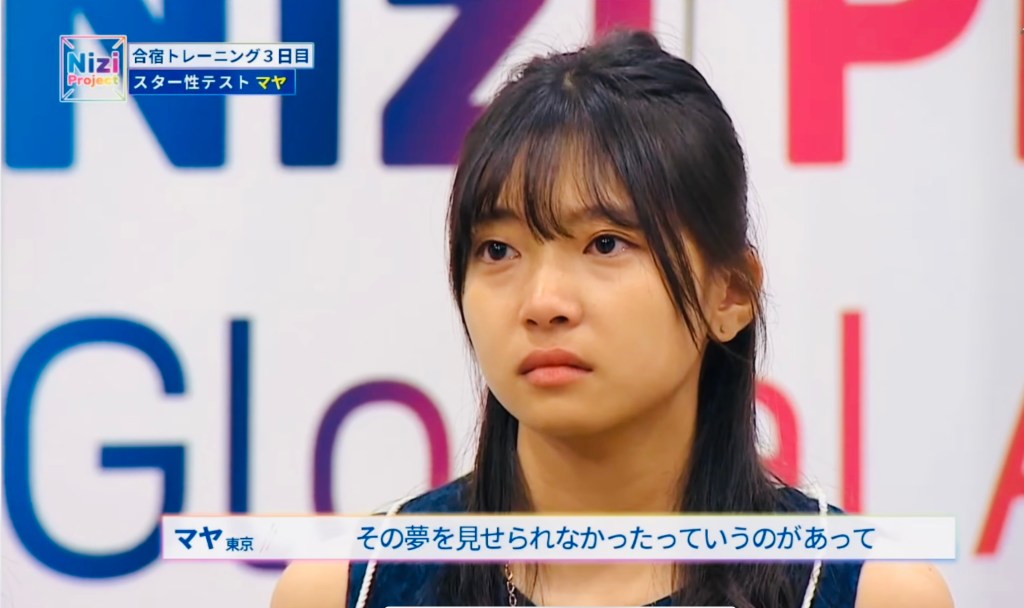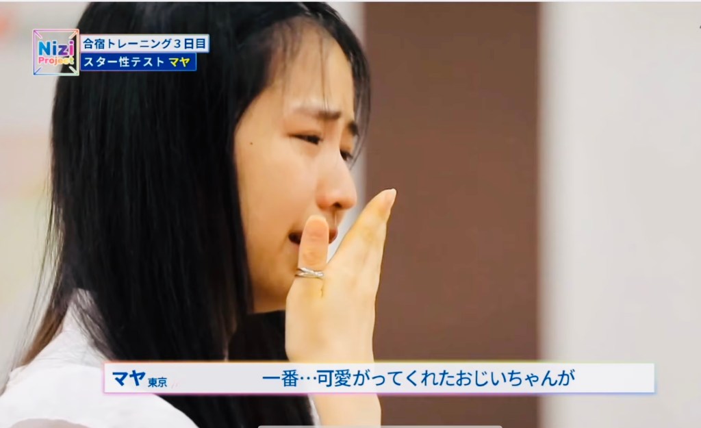 マヤはこのNizi Projectに望む前におじいちゃんを亡くしていて、その話が会場中を涙のうずに包みます。本当に心が優しい人だと分かります。きっとおじいちゃんも今天国で笑ってくれているでしょうね。