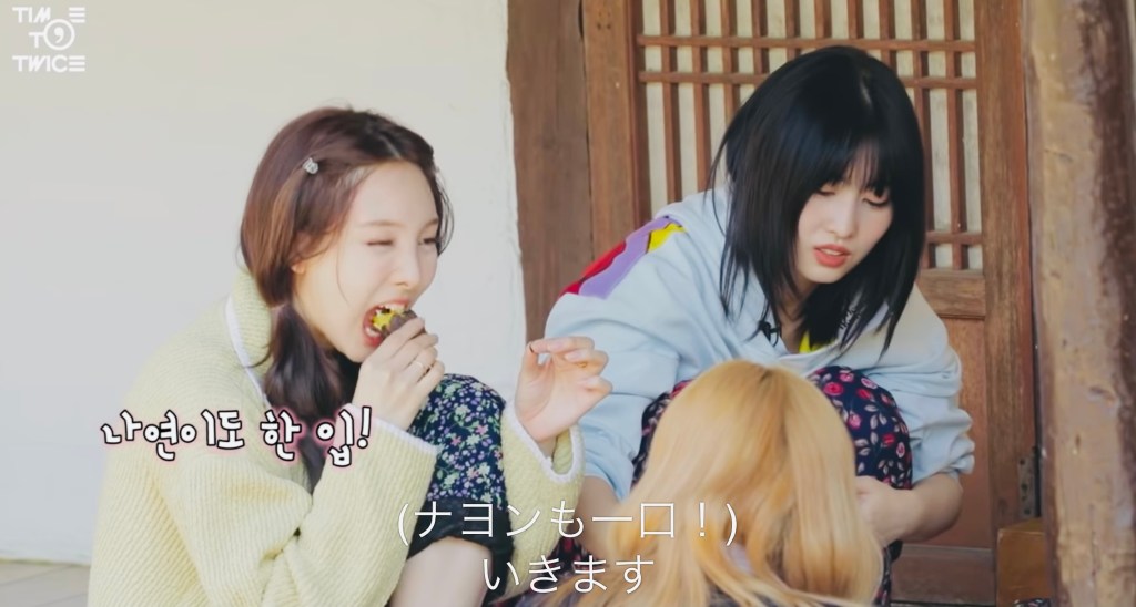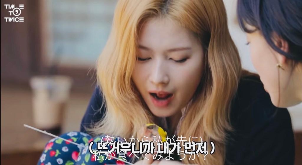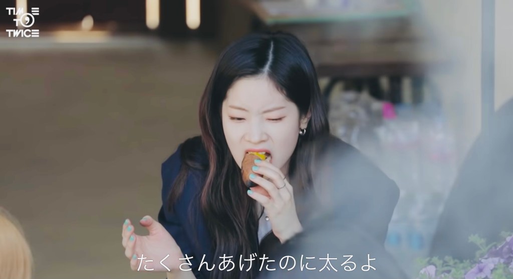 TWICEメンバーはとっても仲が良くて、何年も一緒にいるので、かじった焼き芋をみんなで回して食べるなんてのも慣れっこなんですね。