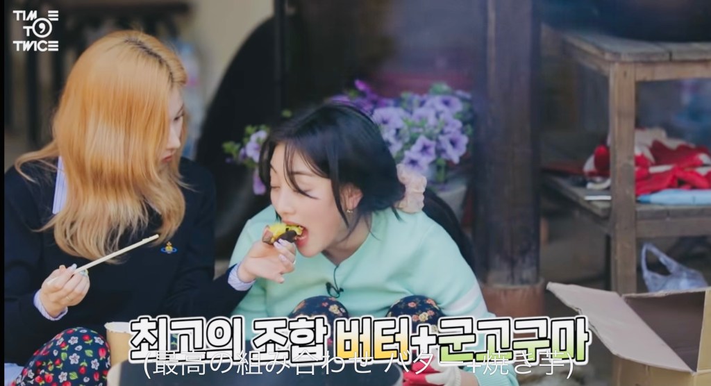 現在配信中のTIME TO TWICE『TDOONG Forest』のEP.04で、TWICEメンバーが焼き芋を食べるシーンがありました。