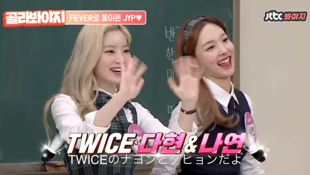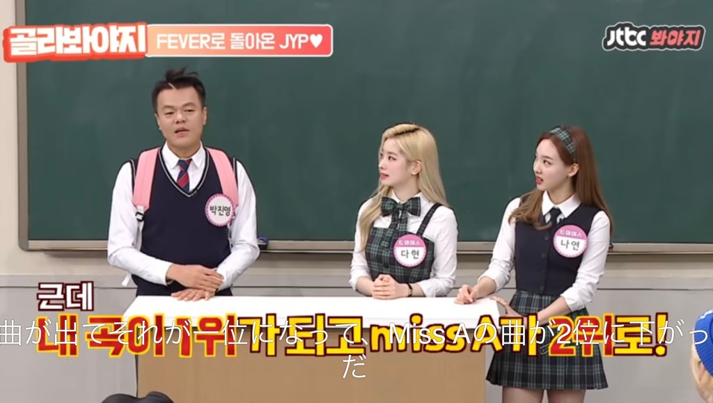 パク・ジニョン氏はFEVERを出した時で久しぶりのカムバック。韓国で大人気のバラエティ番組に出演するにあたって、TWICEのナヨンとダヒョンが応援に駆けつけました。
