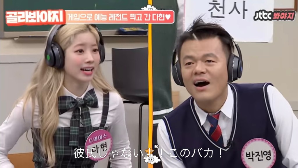 パク・ジニョン氏があまりに理解してくれず「彼氏じゃないよ!このバカ!」と暴言を吐いて現場は大爆笑!ダヒョンのバラエティ力の高さというか、正直なところが気持ち良いですね!