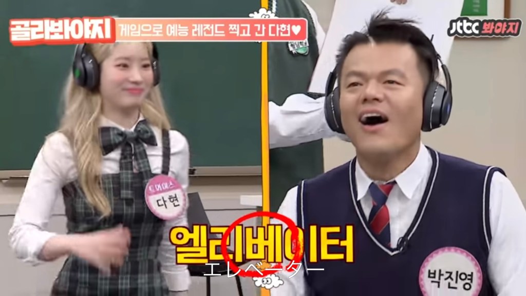 エレベーターというお題でやっと正解!「君が踊ってたじゃん!」というFEVERのMVの話をしましたが、結局「上がったり下がったり…」でピンときたパク・ジニョン氏。やっぱりダヒョンの説明が下手なのでは。(笑)