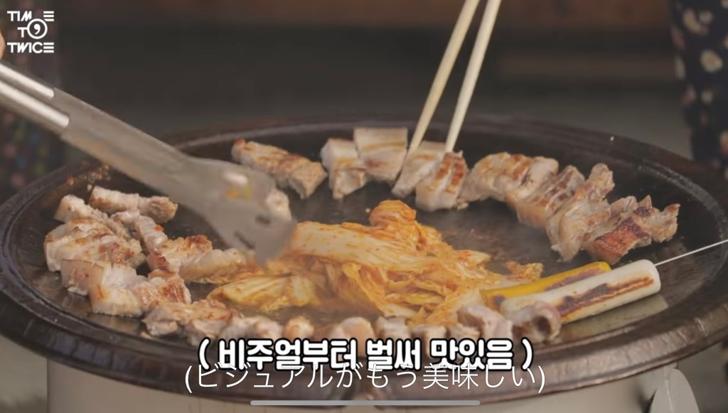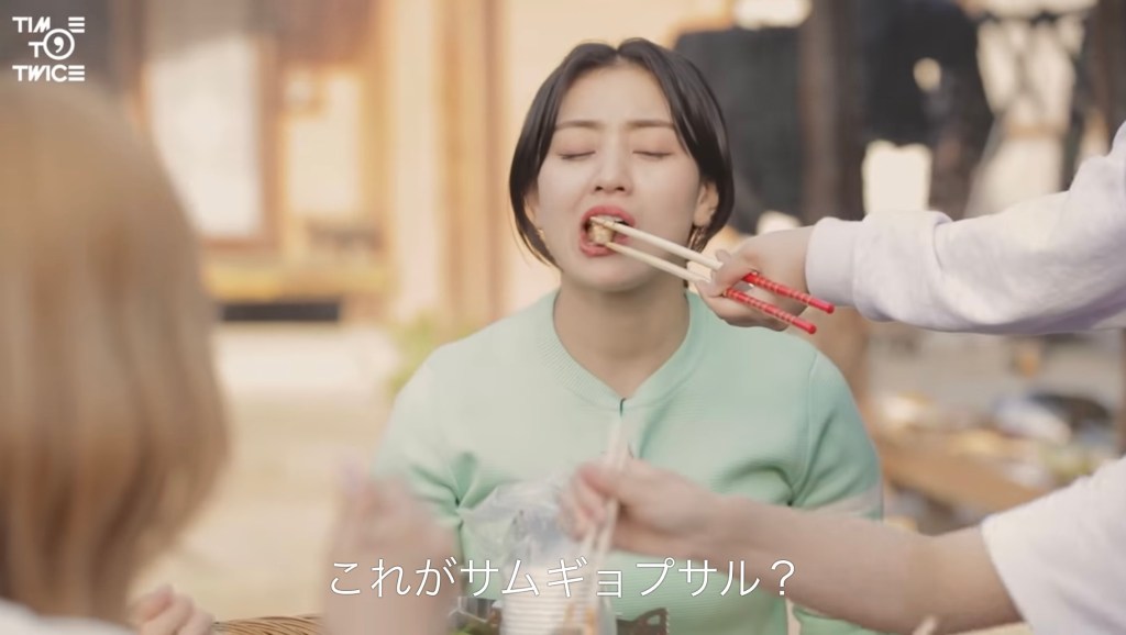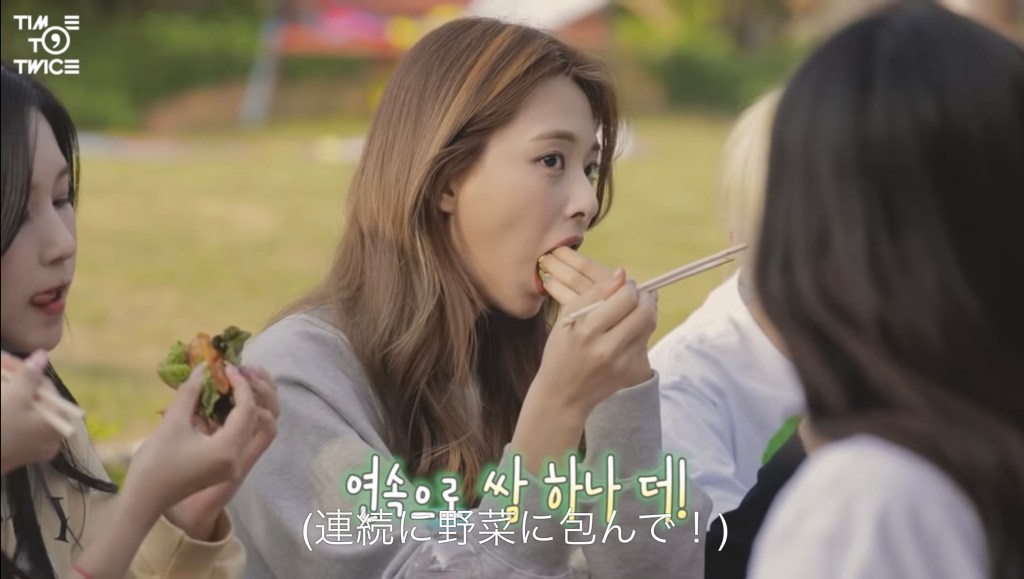 あまり写ってはいませんでしたが、みんなでお肉を食べるときも、ジョンヨンはずっと立ったまま、長い菜箸でお肉を取って、ジヒョの口に入れたり、遠くのメンバーに取ってあげたりしていました。