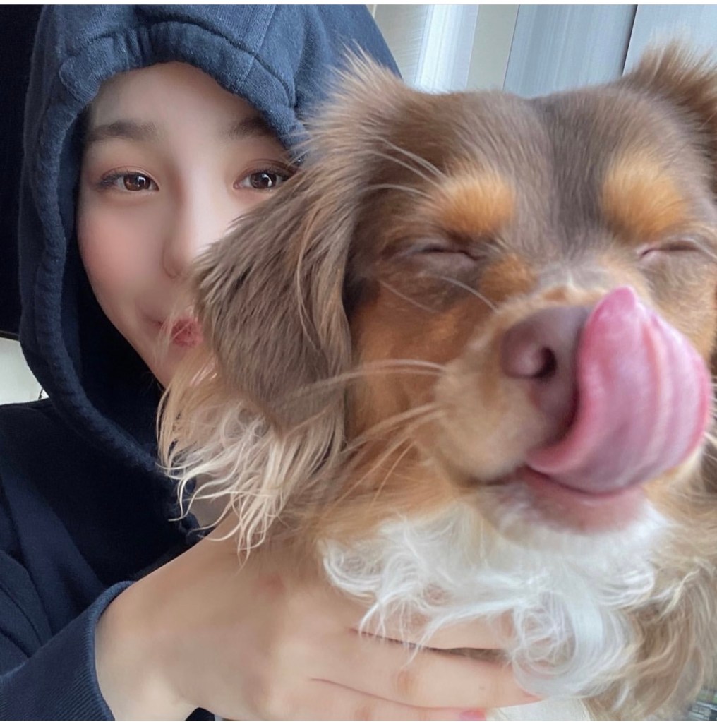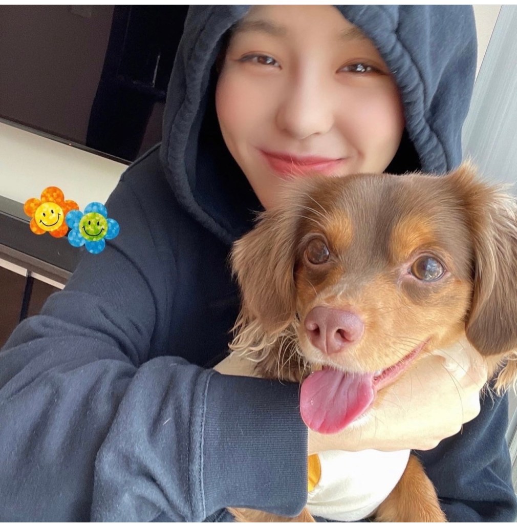 フードを被った愛犬パナちゃんとの2ショット写真をアップしたマコの透明感が凄すぎます!