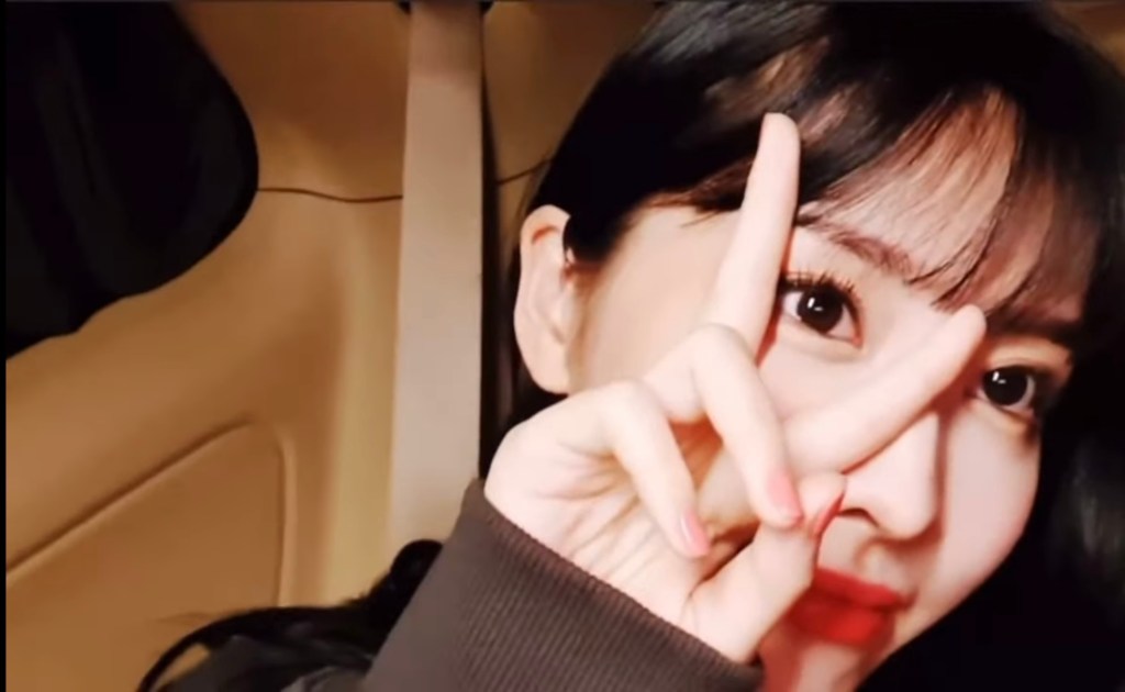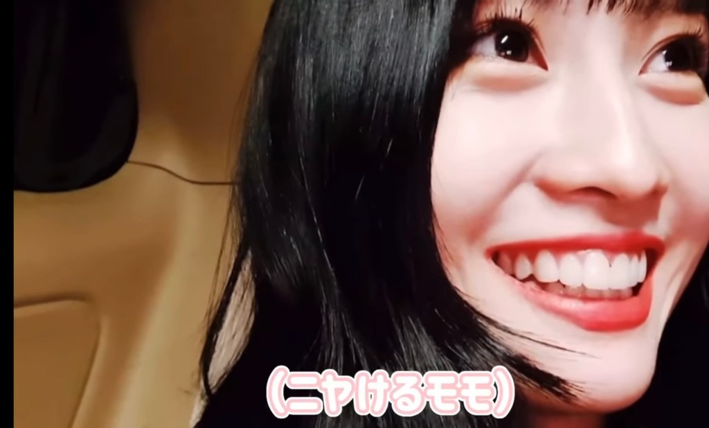 この日は撮影を終えて車内で休憩中のモモでした。一人でVライブを始めますが、しばらくするとダヒョンが乗ってきます。