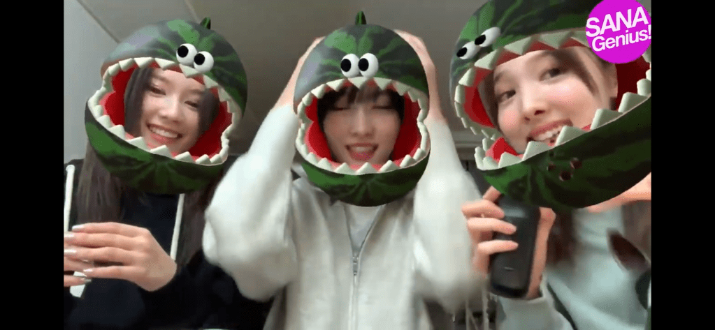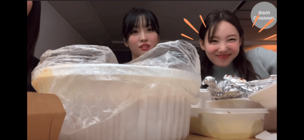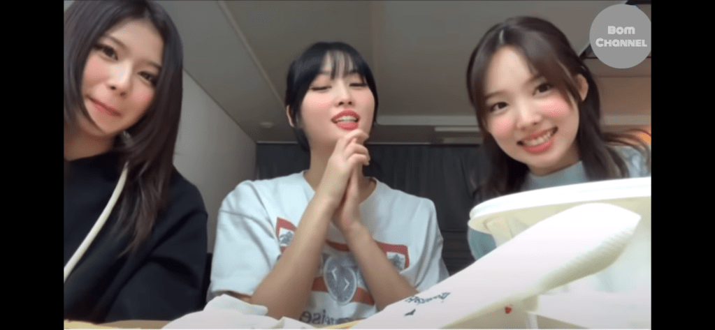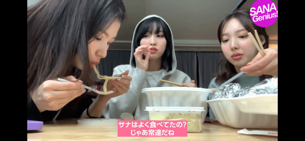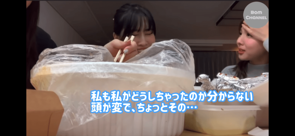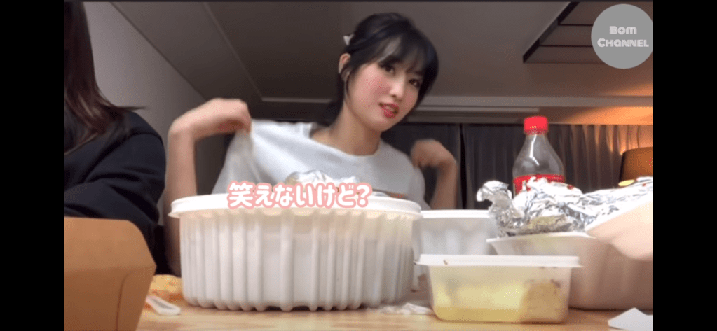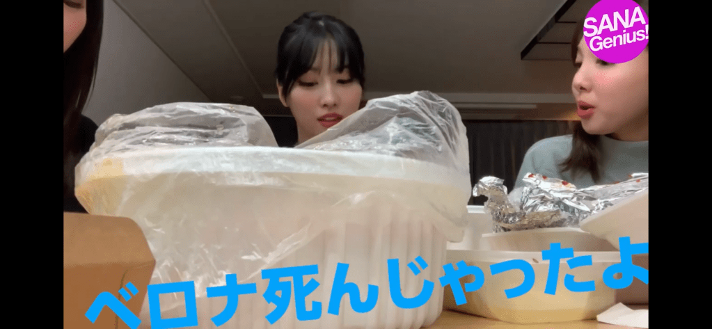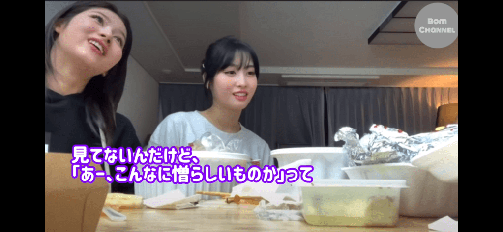 この日はオンラインライブ終わりでホテルの一室でナヨン・モモ・サナの3人で夜食時間を過ごしていました。