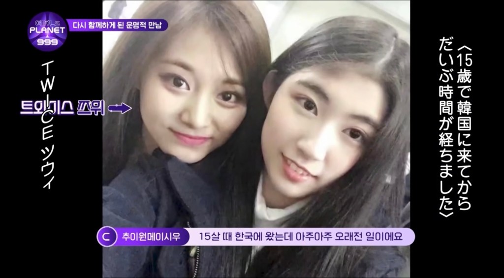 色々な共通点とセルが紹介されましたが、この3人のセルに大注目。それは「元JYP練習生」という共通点を持つ3人。日本人の坂本舞白、韓国人のイ・ヨンギョン、中国人のツゥイ・ウェンメイシで構成されたセル。