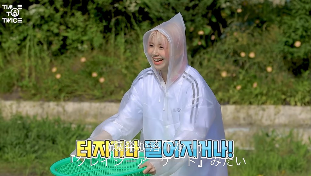 今回のエピソード最初の競技は水風船キャッチゲームでした。キャッチ役のチェヨンとモモにメンバーが水風船を投げるゲーム。