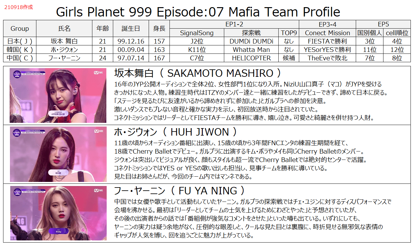 2021年9月17日に放送されたGirls Planet 999 : 少女祭典(ガルプラ)で、坂本舞白ちゃんがリーダーを務めるチームがITZYの『Mafia In the morning』(以下Mafia)を披露し、大きな話題になっています!