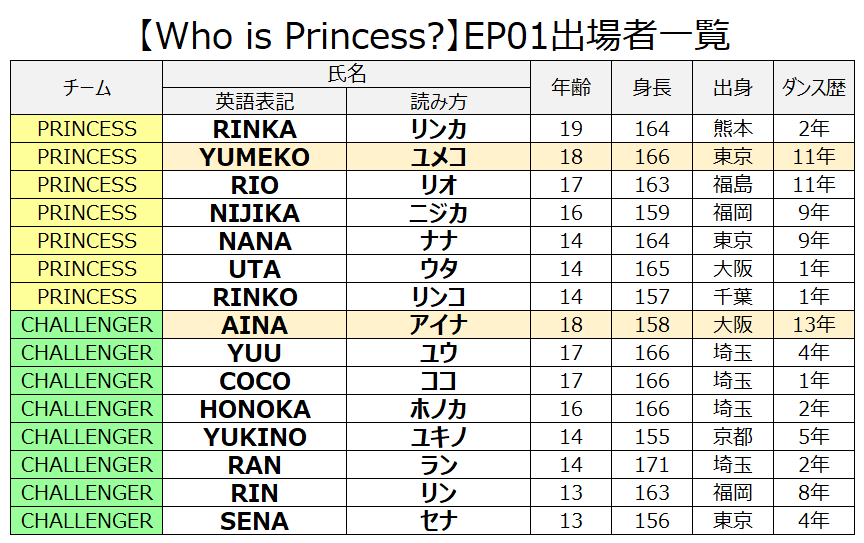Who is Princess?ではミッションごとの実力に応じて、デビューに近い「PRINCESS組」とデビューから遠い「CHALLENGER組」に分けられて、それぞれ課題をこなぢていきます。
