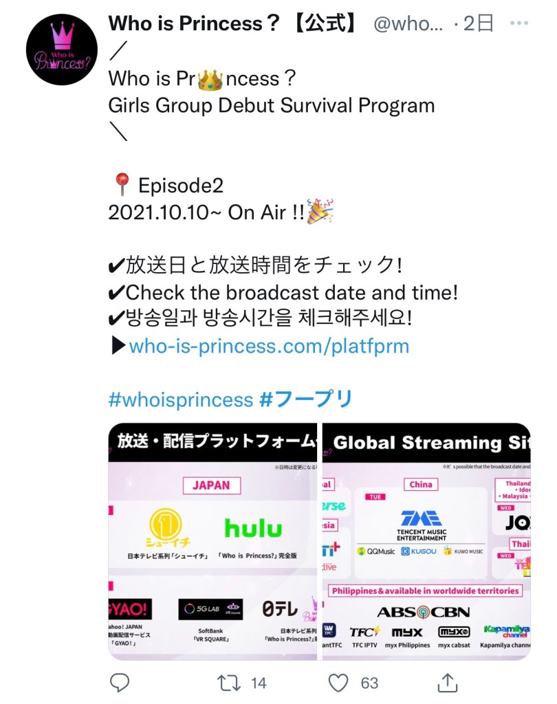 10月10日(日)Who is Princess? の2話目が放送されました。公式Twitterのツイートの周囲からの反応や公式YouTubeの再生回数を見ても、残念ながらあまり人気はないようですね。